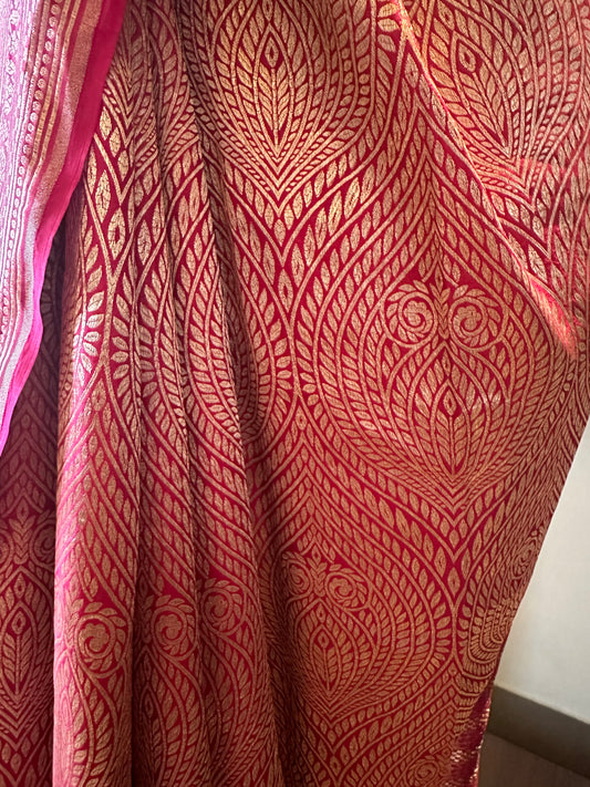 Sunehere Gulab- Silk Banarasi Jaal SareeRegular price โน18,900 INRRegular priceUnit price / per-