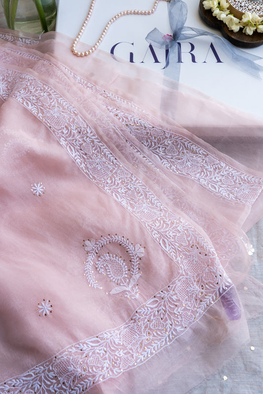 Sold out One&OnlySoft Blush- Organza Chikankari Saree