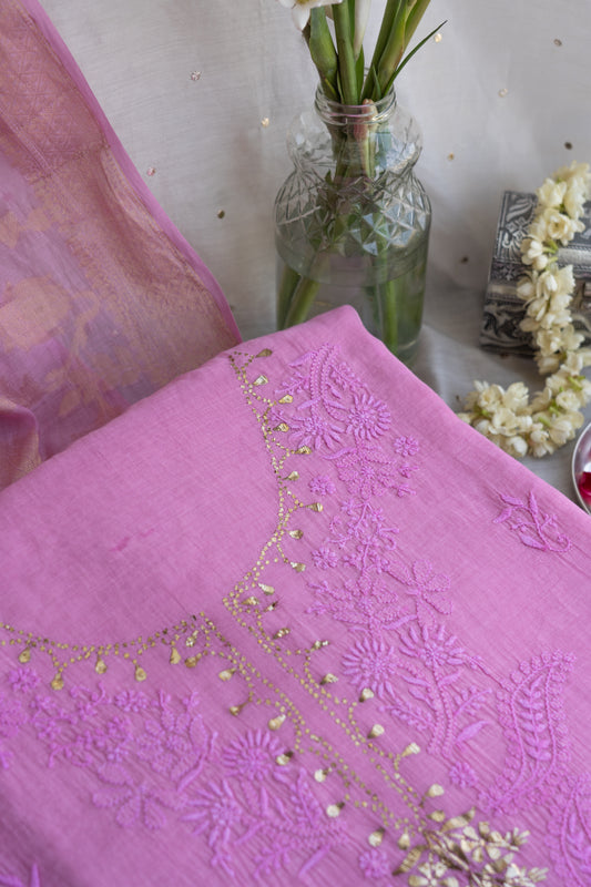 Vaidehi- Chikankari Mukaish Suit with Banarasi Dupatta