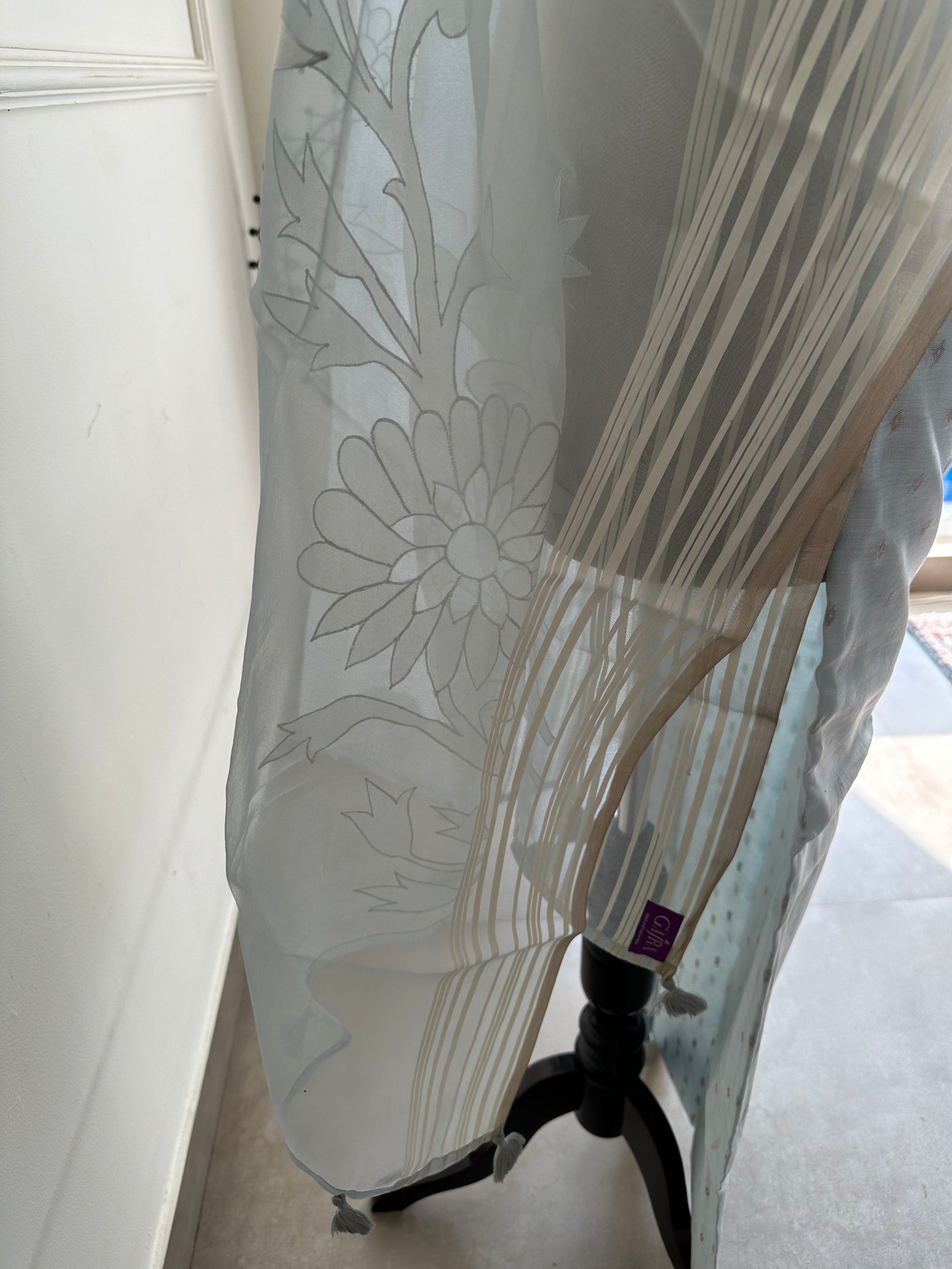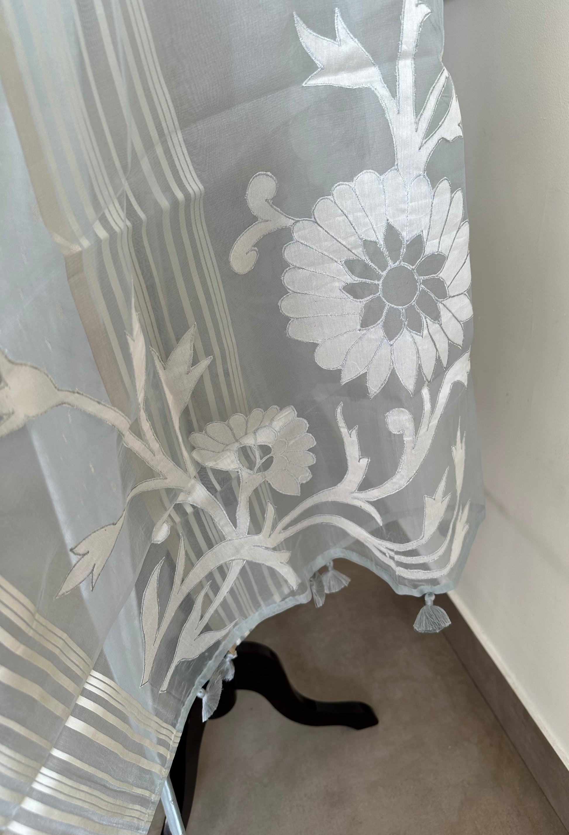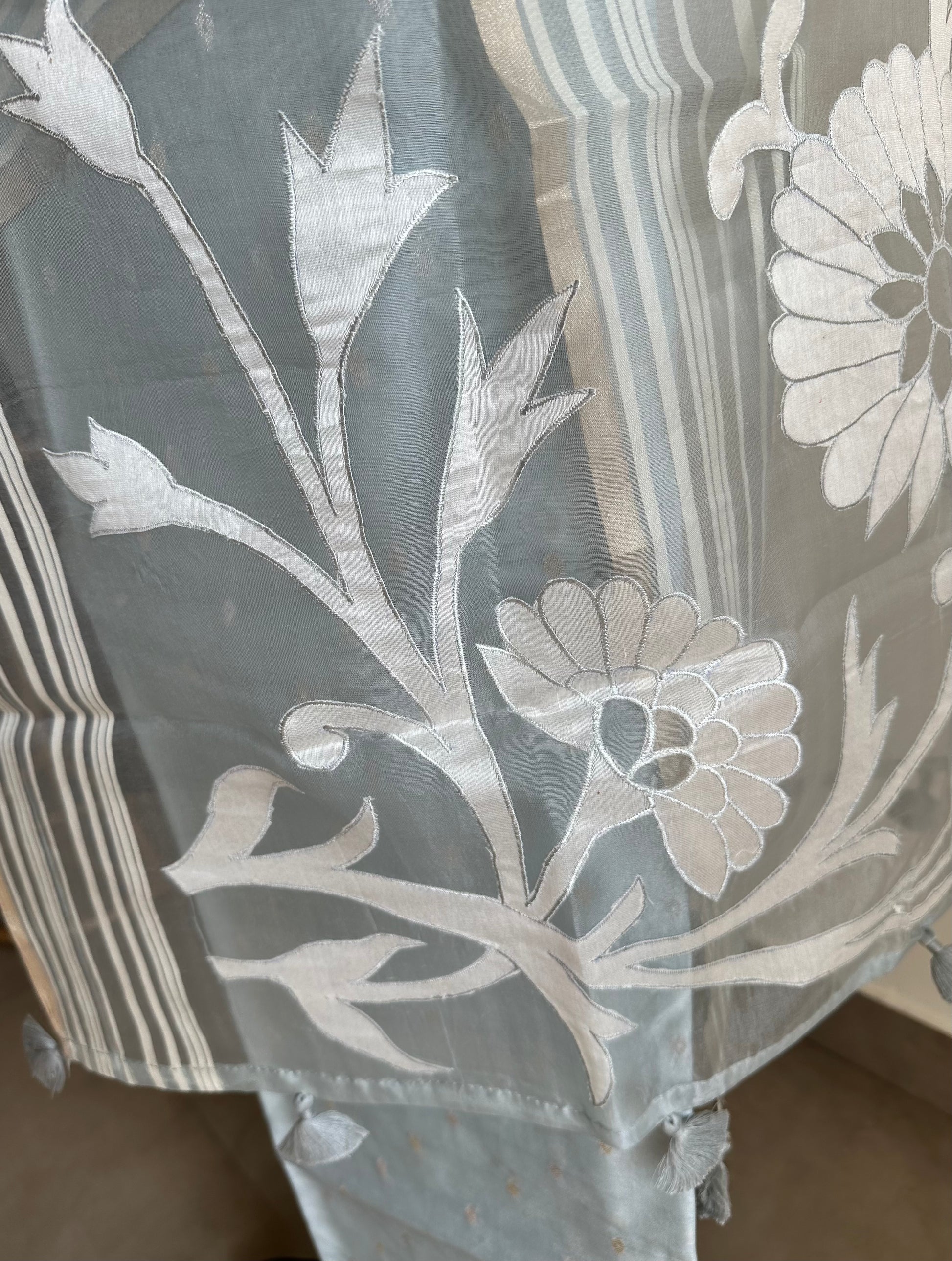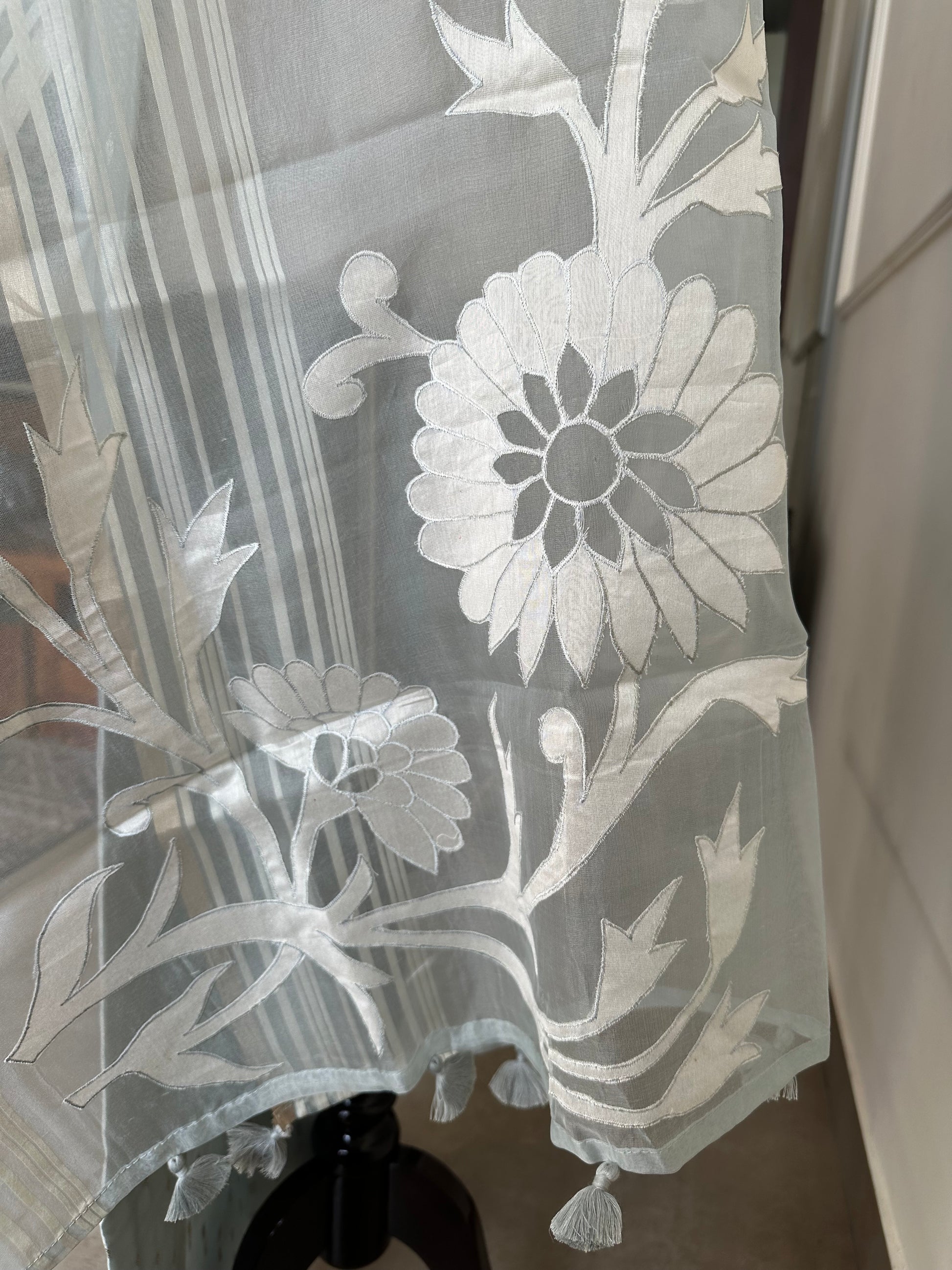 - Floral Applique design on Dupatta finished with a Zari border and tassles