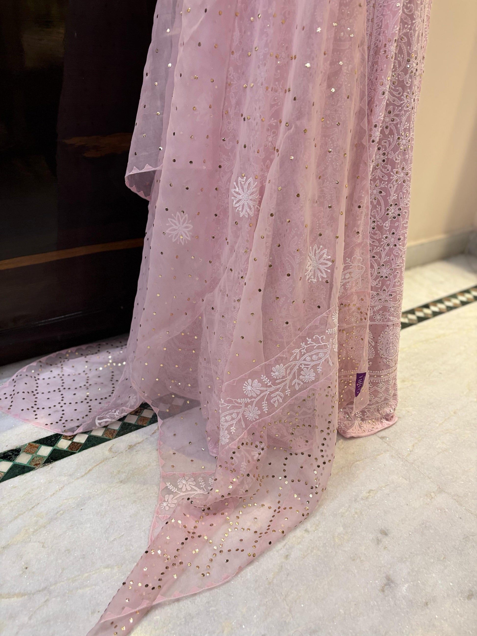 Custom Chikankari and Mukaish Georgette Lehenga with Organza Dupatta
