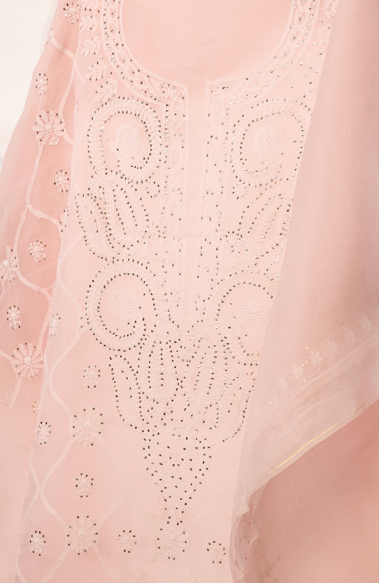 As the name suggests, Do Taar Chikankari involves using two threads to create fine and intricate designs. This technique requires a balanced hand to ensure that the double-thread work does not become too heavy or lose its elegance. The use of two threads creates a subtle depth and texture, making the motifs stand out beautifully against the fabric.